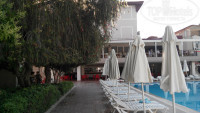 Бассейны на территории отеля: перед вторым корпусом, где проходит аэробика и водное поло и за вторым корпусом (там потише, но только лягушки квакают вечером). Но пахнет хлоркой от бассейнов, оно вам надо?