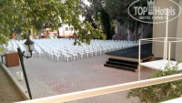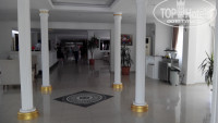 Оставили сумки в комнатке - кладовке, рядом с ресепшен, переоделись там же, т.к. снять теплые куртки и одежду в отеле больше нигде нельзя! И пошли в ресторан по прямой в первом корпусе, затем на море, где пробыли до 13-30 ч. в ожидании комнаты. Номер дали во втором корпусе на первом этаже с видом на эстраду. Выдали два электронных ключа от номера и две карточки на полотенце (при потере одного из них штраф 10 евро). Территория отеля маленькая, один бассейн сразу под окнами и перед столовой, ресторан не поворачивается сказать. Зона питания разбита на три части - на террасе(лучшие места), внутри зала за сладким столом - самое темное место, т.к. нет окон и только верхний синий свет, и по лестнице наверху еще один большой зал куда и тянет весь дым от гриля при жарке мяса и рыбы.