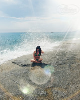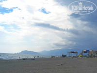 Проход на пляж через подземный переход. Идти совсем немного - пару минут. Можно и по дороге, но мы так не ходили. Без лежаков на пляже ни разу не остались. Но полотенец в отеле для пляжа нет, поэтому придется брать с собой или покупать там. Хотя в описании отеля указано, что полотенца есть и бесплатно. Заход в море - небольшой проход по гальке и песку между аля - плитами. Тут всегда много людей. Поэтому мы отходили чуть влево. Но там заход по твердым скользким плитам. Тяжеловато заходить при сильных волнах. Но мы ноги ни разу не порезали и людей тут один-два человека. На пляже стоит аппарат с бесплатной водой и соками. Но открывают его не с самого утра.
