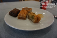 Из плюсов, очень понравилась еда - многие туристы полюбили шеф-повара, который и сам ежедневно стоял на раздаче. Естественно скапливалась очередь , например за раками, или форелью. Безумно вкусные грейпфруты, помидоры (в том числе , черри). Также из фруктов, были арбузы, дыни, черешня, яблоки, бананы. Никогда не забуду вкус оливок. Оливки, которые продают в Москве - для меня теперь не оливки.. Пахлава - объеденье, которую готовили в отеле. Купила потом в Москву в магазине при отеле, в качестве подарков, - но нет...далеко нет..