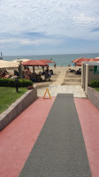 на пляже песок сеят два первых ряда лежаков, остальные два остаются как есть, окурки и другой мусор (но это уже-вопрос воспитания отдыхающих), палочки, которые больно выпиваются в подошву ступни, камешки.