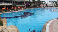 Бассейн с морской водой находится в непосредственной близости от пляжа, как и бассейн с хлоркой. Кстати, за время нашего пребывания в начале активного сезона, я ни разу не видела, чтобы чистили оба эти бассейна. Даже с вопросом обращалась к рускоговорящим девочкам из персонала отеля, что разносят напитки по пляжным бунгало и работают в нижнем ресторан-баре у бассейна, никто тоже не видел, как их чистят. Есть служба гест релейшн, но до нее я не дошла с этим вопросом. После АД отель будет восприниматься как испорченный отдых. Лучше доплатить или найти альтернативу за более вменяемые деньги. Посмотрите Ela resort, Sherwood greenwood resort и Adora resort ( в этот отель на неделю собираюсь с детьми в этом году сама).