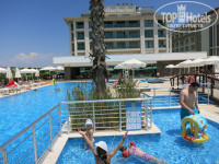Отдыхали в Белеке первый раз. Отель нам очень понравился! Территория небольшая, но очень уютная. Номер просторный со своей изюминкой) Дверей в санузле нет. Есть резная перегородка. Это абсолютно не мешало, а наоборот помогало. В ванне всегда было сухо. Мини-бар пополнялся регулярно в послеобеденное время. Активная детская анимация: детки были индейцами, делали пиццу и пекли печенье, играли в разнообразные игры. Скучать детям было некогда. Еда всегда разнообразная. Раз в неделю рыбный день, турецкий день. Всегда свежие фрукты и овощи. После обеда мороженное и венские вафли (кстати очень вкусные). Был и диетический стол, что очень хорошо для семей с детками. Детское меню на ужине в отдельном зале. Отличный оборудованный кинозал. Детям там мультики показывали. На пляже и возле бассейна лежаков всегда было достаточно. Вход в море хороший, мелкая галька.