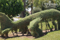 Большая зеленая территория, фигурки резные, фонтан, 2 бассейна. Территория так велика, что в первый же вечер я заблудилась. Пришлось спрашивать у туристов, как пройти к океану)) Выхода 2: главный на улицу, где проезжая часть и к океану. Там тоже дорога, машины, но не такое интенсивное движение.