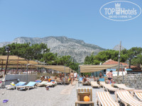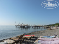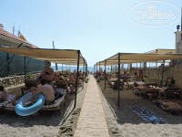 Пляж: До пляжа надо топать где то 5 мин. Пирс понтонный я видел, почему то на берегу. В море его то ли еще не спустили, то ли уже не спустят. Сам пляж маленький, лежаков на всех не хватает, особенно под навесами. Бар имеется. Предлагается вода, соки (порошковые) и кофе. Из 10 дней кофе машина не работала всего 2 раза. Сам пляж песчано - галечный. Надо иметь ввиду что заходить надо аккуратно, ибо уже через метр - полтора начинаются скользкие и большие валуны.