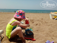 На пляже достаточно шезлонгов (бесплатно), но нет полотенец, даже платно. Мы это не учли и пришлось купить в магазинчике возле отеля (сторговались по 4 доллара за большое однотонное полотенце). Крупный песок + галька у самого входа в море. При входе небольшой резкий обрыв (сантиметров 30), далее равномерное повышение глубины. Метров через 30 достигается глубина "по плечи". На пляже чисто, нет навязчивых торгашей.
