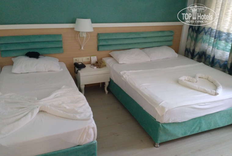 Отдыхал с сыном 8 лет (с 03.06 по 10.06). Жили в трёх-этажном корпусе, в трёх-местном номере (при заселении положил 10 $ в паспорт) возле ресторана; по ночам разгружали продукты и было шумно для меня (сын спал)), купил беруши, всё прошло. Наверное, это самый большой минус (для меня).