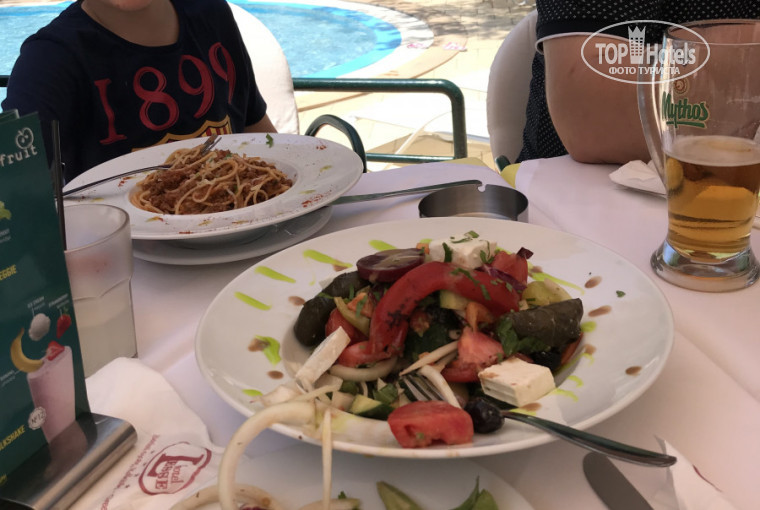 В целом отель очень неплохой. Мне понравился. Территория очень хорошая, много зелени, сосны, виноград растёт по забору, каскад из 3 небольших бассейнов. Номера чистые. Море не далеко. Кормят нормально, разнообразно. Конечно не Турция. Но каждый день новые блюда. Рядом оливковая роща. До посёлка идти минут 7-10 неспешным шагом. А теперь минусы: очень хорошая слышимость. Нас ночью разбудили соседи, пришедшие в номер видимо с гуляния... Далее номер осень простой. Насбивало 2 взрослых и двое детей. Довольно таки тесноватенько. Сейф за отдельную плату. Пульт дают под залог. На ресепшн девушки вообще не бум бум по русски, хотя все остальные греки говорят.... Вай фай почти не ловит, еле еле на ресепшн.