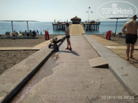 Если бы не бронили до завтрака, то сосали бы палец. По скольку я был с детьми, мне необходимо было минимум -2. Но как я бронировал, приходил, занимал место пока мои ели, потом мы менялись. Такой дикости, чтобы занять в 6 утра полотенцами и прийти в час или два дня - не было. А люди так и делали! Уважаемые, ну что за дикость, мы сами себе создаем проблемы и навязываем отрицательный стереотип русского туриста!!! Что касается действий отеля , то пляж они расширяют, до страивают беседки, были принесены доп.шезлонги - стараются!!! Единственное, что не понравилось, так это, что не везде есть дорожки между рядами шезлонгов - две коляски не разъедутся, коляску приходится тащить по песку на руках, т.к. колеса вязнут. Кроме того, если идти с центральной аллеи из лобби на пляж, так заезд для колясок есть только на левую сторону пляжа, на правую нет. Посмотрите на фото!
