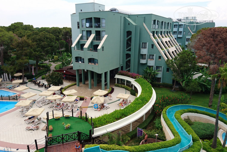 Отдыхаем сейчас здесь с семьёй. В отеле много маленьких детей, территория продумана для передвижения с коляской, и для маломобильных туристов, иногда лишь у лифтов бывают очереди. Интернет работает по всей территории отеля, но не всегда и с перебоями, а так скорость неплохая - мультфильмы из YouTube пропускает. Кстати, почему-то либо отельный файрвол не даёт доступ на сайт tophotels.ru либо сам сайт блокирует турецкие ip, поэтому пришлось использовать vpn. Персонал отеля отзывчивый, попросили на ресепшн поменять на номер в главном корпусе - просьбу не сразу, но когда появилась возможность, выполнили. Питание в ресторане соответствующее уровню 5*, но не De Luxe, детское меню есть в наличии. Будьте оторожны, на ступеньках лестницы из главного ресторана спускающейся вниз, часто бывают необъяснимые лужицы - туда конечно ставят предупреждающие таблички, вместо того что бы насухо их вытереть. Минибар в номере пополняется ежедневно, но кроме сока мы ничего оттуда не брали. Также можно ужинать несколько в раз течение отдыха в тематических ресторанах, если забронировать заранее. Первый раз отдыхаем в Турции в июне, очень комфортно - не жарко и не душно, при этом море тёплое (в прошлом году были в июле в Alva Donna W.P.К. - зной стоял удушающий). Пляж здесь - песчаный, заход в море - мелкая галька. Лежаков на пляже для всех желающих не хватает, и поэтому к 9.30 они уже практически все заняты, но не сплошь отдыхающими, а в основном их полотенцами. С последними здесь полный порядок - с получением и обменом никаких лишних заморочек в виде карточек и прочего. Кондиционером в номере практически не пользуемся, опять же кстати почему-то вечером центральная система кондиционирования и не работает на холод (разумно, ночи итак немного прохладные). Да, официанты старательны и приветливы, а в лобби баре очень неплохой кофе латте. Вообщем пока все нравится, вот только наш малыш заболел, симптомы те самые, сидим (лежим) в номере - лечимся...