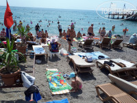 Пляж... Это нельзя назвать пляжем. Места не хватало. Даже не считая занятых полотенцами лежаков. Просто не было места хотя бы лечь на камешки. Люди размещались на соседнем пляже, откуда их сгоняли постоянно..Если пришли на пляж часам к 10, то мест нет совсем, под солнцем, под навесом пожалуйста, но без лежака. В море тоже соответственно народу, как на пляже Советского союза в Сочи. Мы частенько ходили на пляж 5 звезд, подальше от нашего пляжа. Там ругались с охранником, но лежали и никуда не уходили. Вечером поспокойнее, всем всего хватало...