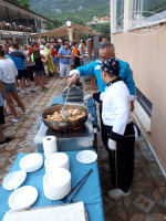 Теперь про еду. На завтрак были вареные яйца, их колбаска и иногда каша, Всякие мюсли и хлопья. Как-то наши дети не впечатлились. Хотя меньшая, ей 2 года, ест буквально все. Арбузы на завтрак, обед, ужин. Пару раз давали дыню, черешню, сливы и абрикосы. Все какое-то не очень спелое.. по утрам в кофемашине быстро заканчивалось кофе и чашки. На обед была кура и рыба. Но кура периодически быстро заканчивалась, поэтому были очереди... на ужин давали один раз шаверму, а во второй раз шаверму разбавили соевым мясом. Как на вкус не знаю, не пробовала.. Вкусное пиво. Остальной алкоголь в начале вечера был хороший, далее все ухудшался.. Но можно прожить и без него...