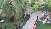 ПЛЯЖ песчаный с галькой, не очень большой, но благоустроенный, жаль что в песке много разного мусора. На пляже есть бар (только напитки), душевые, раздевалки и туалеты. Лежаков, навесов и зонтиков маловато, не всем хватало. Зонтики так себе, было бы лучше если бы были навесы. Заход в море не порадовал ((( ведь взбираться на плавучий понтон по камням с моря совсем не удобно, а до скользкого деревянного настила тоже еще надо было как то добираться по камням пару метров и далее пробираться сквозь толпу стоящих на нем туристов и детей. Понтоны и мостики удобны только если заход организован прямо с берега, а не с 2 метров по камням с моря......