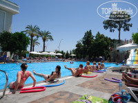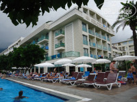 Отель приятно удивил, когда приехали, разместили не сразу, но оставив вещи на ресепшен, нас отправили на завтрак, потом мы взяли полотенца и пошли купаться, после обеда дали чистый и уютный номер. В отзывах писали, что плохая изоляция, хочу сказать, что таких проблем не было, у нас номер был расположен на 4-м этаже, все тихо и спокойно, пьяных певучих не было, слышала, что молодежь просили не шуметь и тогда они уходили на пляж. Отдыхали с подругой, ходили на зарядку в 10:20 к аниматору Анастасие, она вам поможет подтянуть ягодицы, ноги, у меня спина перестала болеть! Также проводят и другие спортивные занятия, всем по душе. Спасибо аниматорам за номера вечером, Али талант, танец живота, сценка, также спасибо двум аниматорам-туркам за проводимое шоу, извините, не знаю как зовут, одна сценка с девочкой до слез. Хочется отметить питание, из мяса - курица, индейка, баранина, просто тушеная и на гриле, много овощей, из фруктов яблоки, апельсины, грейпфруты, черешня, абрикосы, арбузы. Еды достаточно, странно видеть очередь как когда-то в школе голодных отдыхающих перед дверьми ресторана))) Отель небольшой со свои пляжем, чужих не пускают, все чисто и за всем следят. Единственный минус - среди отдыхающих половина дети и многие отдыхающие курят где хотят, сложно найти уединенное местечко "без куряк".