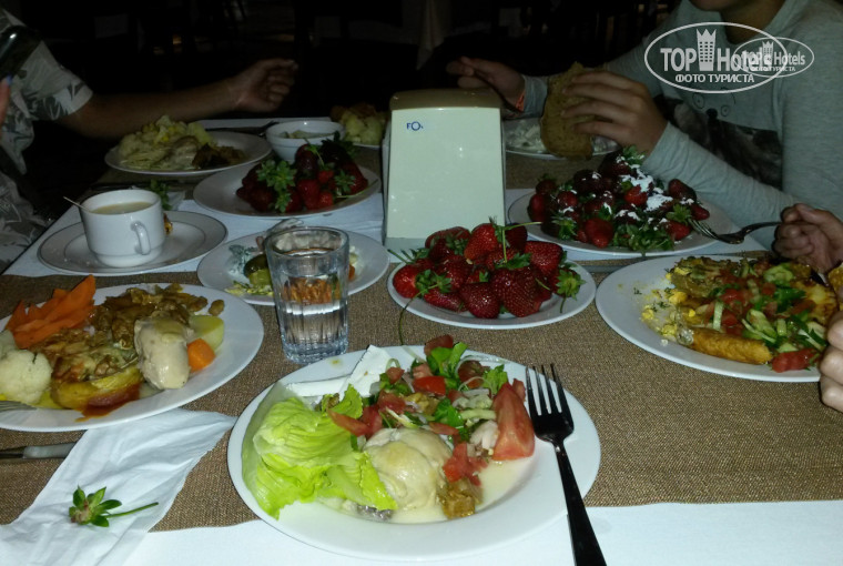 Мы отдыхали в мае 2017. Нам все понравилось. Еда отличная. Основной ресторан: пироженки видов 10 не меньше, клубника со сливками-приносили поднос за подносом пока все россияне не объелись, овощи, курица, мясо на гриле. Борщ вообще супер. Рыбы мало, но был еще не сезон. Супчики разные ночные.