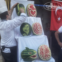 - питание выше всех похвал. Придраться могу только к одному - зачем так много? )) Ну понятно, что это шутки. Действительно всего много и очень разнообразно. Безумно вкусно и в какой-то момент мы даже от этого устали )) Несколько видов блюд из мяса, рыбы. Масса свежих овощей, зелени. Всегда были апельсины, яблоки, арбузы, черешня и сливы. Очень много видов сыров, колбасы (мы правда турецкую колбасу не едим, поэтому не смогу сказать, как она на вкус). Десертный стол поражает своим разнообразием. Мы всегда старались отрезать себе маленький кусочек от пирожного, чтобы поросто попробовать, не нарушив при этом товарный вид. Очень вкусный хлеб и лепешки, сильно отличаются от других отелей и мест турции. перечислять можно бесконечно. Остаться голодными просто нереально. Вернуться без лишних кг - вот это тут проблема. Но благо обошлось, благодаря морю, пешим прогулкам, утренним пробежкам и трен.залу.