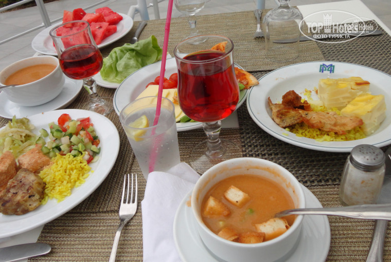 2.Питание- еда вкусная, много фруктов, арбузы, нектарины и дыни потрясающие! Много мяса, птицы, есть рыба и пару раз за 10 дней жарили королевских креветок. Мороженое и на обед и на ужин.