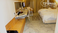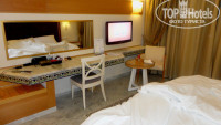 Далее … Холл и лобби бар- тихий ужас! Во первых не уютно, ужасные столики и кресла с деревянными спинками, в лобби баре очередь километровая за алкоголем.Так же и в баре у бассейна. Персонал медлительный, а наливают , ну это просто смешно, я не пью, но уж по 10 грамм наливать виски? Так же в лобби баре кол-во диванов и кресел не рассчитано на такое кол- во туристов. Вечерами просто не где сидеть! Интернет очень слабенький с постоянными перебоями.Кофе так же не вкусный переслашенный ----вобщем ерунда! Та-же картина и в ресторане. Ужин строго по времени. Нам с подругой назначили время ужина в 18.30. Я еще не голодна, а нужно идти есть, тк потом вторая смена! Я за все свои 20 выездов за границу не очень то это понимаю. Посменно люди стоят в очередях чтобы войти поужинать в ресторан!? И это НЕ СЕЗОН!!!!! Два или даже три раза у нас были конфликты с нашим официантом, который был прикреплен к нашему столику. А ненавидел он нас, за то, что чайвые мы ему не давали-ПРИНЦИПИАЛЬНО-за что? Один раз подруга заметила, что вино в бутылку он слил с недопитых кем-то фужеров и принес нам на стол. Опять скандал, вызов главного итд.