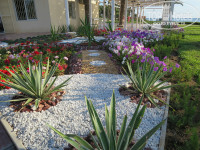 Территория очень ухоженная, красивая, везде красивые клумбы.