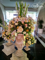 Везде стоят живые цветы, на каждом столике, по всему отелю. И даже в туалетах стоят букетики из свежих роз, и играет музыка.