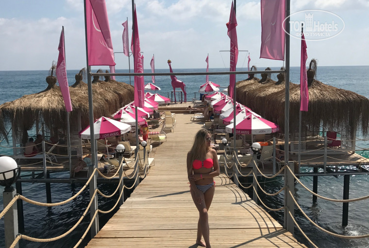 ПЛЯЖ. До пляжа идти минуты 3. Если считать от главного корпуса. По переходу идешь меньше минуты и все, море.У отеля 2 зоны: одна с пирсом, там только взрослые,для деток опасно. Она красиво оформлена, есть беседки (правда стоят 15 долларов в день. Мы там лежали первые 2 дня бесплатно, как и все, потом нам сообщили про деньги. Ну там и рядом есть место, так что ничего). Есть еще зона с песком. Там лежаки тоже есть. Вот там семьи с детьми в основном. Правда места мало, имейте в виду. На пляже с 12 до 16 накрывают ланч (наггетсы, картофель фри, макароны, овощи,яблоки), чай, кофе, пиво, иногда видела вино.