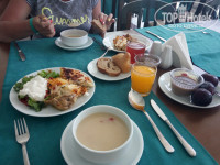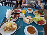 По еде: твердая четверка!кухня хорошая,всегда есть что покушать!Фрукты: арбузы дыни сливы абрикосы черешня апельсины яблоки. Вкусные сладости. Первые и вторые блюда также хороши.(единственное для детишек может быть островато,надо выбирать!).Персонал работает хорошо,не успевали докушать,как уже забирали тарелки.Повар много раз выходил спрашивал как еда.Но русские это конечно еще та бомба!зачерпывали черешню тарелками, проливали все напитки и соусы.Бабки за фруктами ломились,ругались в очереди.