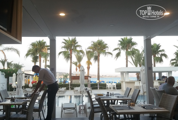 Расположение у отеля наишикарнейшее, пожалуй лучше и представить сложно. Прямо под окнами отличный пляж (собственно отель является пляжным), около 20 лежаков с зонтами на пляже являются отельными, соответственно платить за них ничего не нужно. Все остальные лежаки и зонты по 2.5 евро. Расположение отеля такое, что все достопримечательности и развлечения города находятся в пешей доступности. Прямо рядом с отелем расположен порт, он совсем небольшой, но там есть где прогуляться и очень удобно, если собираетесь отправиться на морские прогулки. Количество ресторанов, баров, супермаркетов, сувенирных лавок и тп просто зашкаливает, рядом выбор просто огромный. Кстати прямо под окнами находится рыбный ресторан Ocean Basket, что должно понравиться любителям морепродуктов, далеко идти не надо.