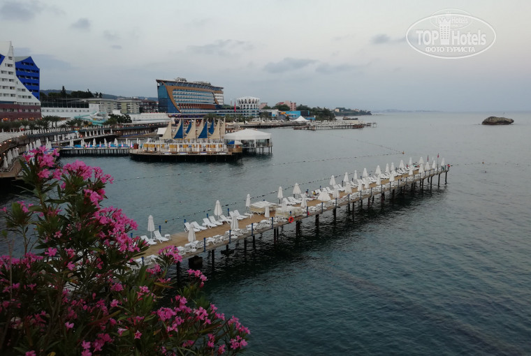 ПЛЯЖ Про маленький и дурацкий пляж сказано уже много, хочу посоветовать сходить на другой пляж, налево от отеля минут 10-15 отель Джастиано где шлагбаум и топаете вниз до пляжа. Вот там красота неописуемая. Пляж огромный лежаки, галька, огромные волны. Мы и накупались и напрыгались на волнах.