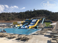 Отдыхали в июне 2018 года. Честно сказать ехали сами не знаем куда, потому что отель был на ремонте и когда он закончится и будет ли аквапарк было неизвестно. Но отелем остались очень довольны. И бассейн, и горки, все есть..отдыхали с дочкой 3 лет, из бассейна не вылезала))) Начиталась тут про море, что камни и неудобный заход, и долго. На самом деле нам с коляской минут 7, хотели на пляж, который слева от отеля , до первого поворота и вниз..и очень нам там нравилось, заход хороший песочек, по бокам камни, но даже прикольно) красиво пофоткались там. Лежаки и зонты по 2,5 евро, но мы не брали. Купили подстилку в местном магазине и зонт и отлично этим обошлись. Экскурсии от туроператора не брали. Брали экскурсию напротив отеля «морская прогулка» за 10 евро с человека, катались на катере в голубую лагуну, тоже понравилось. Может и ещё куда-нибудь съездили от этой конторы, но время поджимало, да и с ребёнком 3 года конечно не накатаешься))) Ездили ещё в айнапу в парк развлечений, тоже понравилось, причём на автобусе и кстати очень даже хорошо, думала будет неудобно с ребенком, но вполне нормально, ехать минут 15. По отелю вообще все отлично, рекомендовала б его всем отдыхающим, особенно с детьми. Номера чистые, Свежие, обслуживание хорошее, некоторые даже по-русски прекрасно понимают. Единственный минус-это анимация, ее практически нет. Детская с 8 часов и максимум полчаса. А потом просто включается музыка и все сидят у бара) молодёжи наверное будет скучно, а с детьми в самый раз..они бегают друг за другом))ну в общем, отдых удался и спасибо этому отелю))
