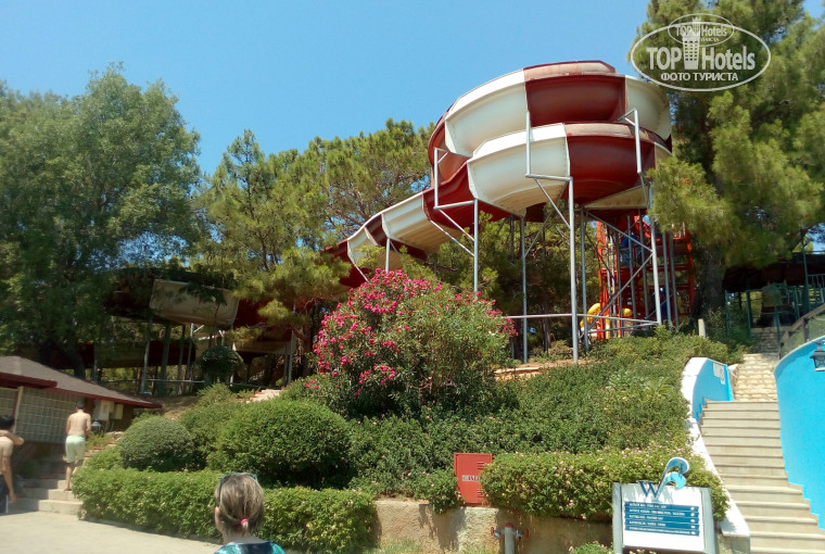 Привезли нас в 9 утра в отель,а заселение в данном отеле в 14.00 вот и пришлось до заселения буквально сидеть на чемоданах.да мы посетили шведский стол он нам показался большим и разнообразным,искупались в бассейнах и море (хотя переодеваться и переодевать детей для этого было экстремальным ).ну вот мы и дождались 14.00и получили номер .кстате на ресепшене почти не говорят на русском .нам повезло номер у нас (2+2)на 0 этаже и окна не на стену бетонную .В аквапарке достойных горок по пальцам пересчитать и закрываются все они в 17.00.территория большая и красивая.н для детей нет не какого развлечения.анимации днём для них нет.в отеле большую часть занимают турки и поляки.анимация вечером в виде дискотеки проходила на турецком языке.когда выезжали из отеля сев в трансфер и поговорив с другими землеками ,так оказалось ,что нас кормили даже плохо.у них и черешня и персики ,абрикосы ну короче весь спектр фруктов мясо,и рыбы.