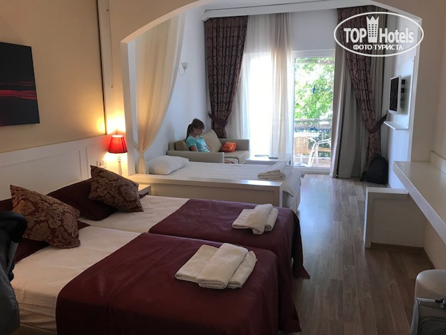 НОМЕР: у нас Large Room . В номере есть Кондиционер, холодильник, состояние на наш взгляд среднее, кое где можно и подремонтировать и подкрасить, но в общем жить можно (приехали то на море;))) при заезде был сломан душ, об этом сообщили гиду АНАСТАСИИ на встрече и все починили в этот же день. Выезд у нас так же был поздний продляли номер до 19:00 заплатили 50$