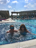 На тер-рии две водные горки, работали с 10-12 и 14-16, маловато. Лежаки у бассейна надо занимать с утра, часов с 8, так как в 10 после завтрака уже всё занято. На пляже и пирсе более менее свободно. Большее время проводили на пирсе, там и не так жарко, есть холодильник с водой и аппарат с лимонадами, душ. Опять же много лежаков занятых полотенцами, НО никого долгое время не наблюдается. Люди просто так занимают, а где находятся не понятно вообще. Пляж песок, а при входе в воду местами галька. Пляж широкий, 3 ряда лежаков под общим навесом. На пляже есть бар с напитками и закусками, днем можно пообедать горячими блюдами. В баре у бассейна только напитки - разные вкусные коктейли.