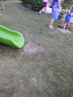 Очень расстроила детская площадка, которой фактически не было, рядом с детским клубом она была засеяна травой которая не проросла к началу сезона, поэтому была огорожена и невозможно было на нее попасть, но второй в центральной части имелась всего одна качелька, полу разломанная, фигурка какого то животного на пружинке, не закрепленная толком в земле и небольшая детская горка, которая заканчивалась огромной грязной лужей, под конец нашего отдыха в лужу постелили кавролин в виде травы.