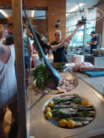 Еды более чем достаточно, на любой вкус и цвет, часто была красная рыба в виде стейков на гриле, постоянно курица, белая рыба, тушенная говядина, аля-люля кебаб и прочее, на любой вкус и цвет, различные тематические вечера,в общем голодными не останетесь.