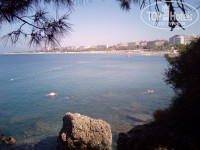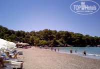 Пляж песчано-галечный, море теплое, чистое, рядом покрытый сосновыми зарослями мыс. Вход в море – мелкая галька, специальной обуви не требуется. Свободные лежаки можно найти всегда. Через несколько метров от берега глубина резко возрастает. К пляжу спускаться по горке пару минут, можно подъехать на джипе с приветливым водителем.