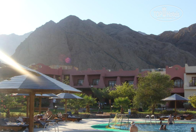Отдыхали с любимым в конце августа. Место очень тихое , уединённое, романтичное..чего нам и хотелось)) очень много дайверв, отель в непосредственной близости от Блю Хоул , но мы так и не решились погрузиться в воду-очень сильные волны и ветер...Погода была ооочень жаркая, климат сухой и приятный, жара легко переносилась)) еды было ооочень много и ооочень вкусно, очень много десертов на ужин)) за номер с sea veiw заплатитли 20 баксов, но лучше не жалеть этих денег потому что остальные номера с видом на дорогу и стройку- не очень романтично...Кровати каменные и их не передвинуть, но нас это не напрягало, иногда спали вместе , когда было не так жарко на одной кровати из двух-они большие довольно-таки (да мы и сами худенькие) кондиционер работал отменно, без него невозможно находиться в номере) чаевые носильщику дали в размере 1 евро, потом пришел второй-принес поздний ужин (так как мы поздно заселились) даю ему 50 евро центов - он говорит "нееет, один доллар давай" нас это позабавило)) ездили в дахаб, кушали нам пиццу, катались по пустыне на квадроциклах, загорали и купались у бассейна и в море..отлично провели время....) отель не для шумных тусовок с друзьями, а именно тихого , приятного времяпровождения...