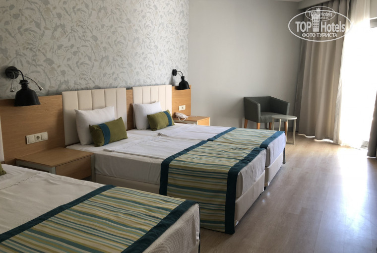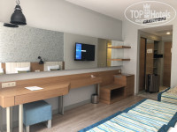 Приехали в гостиницу в 8 утра. На ресепшн мы заполнили анкету. Нам одели браслеты и отправили на завтрак. После завтрака сообщили, что свободных номеров нет и вообще поселение с 14:00. Мы с дочкой переоделись и пошли к бассейну, а муж остался ждать. Позже его подозвали и предложили «порешать». Цена вопроса — $50, и нам заменят номер на sea view (у нас в путевке garden view). Мы отказались. Еще час ожидания и нас заселили в наш номер (~12:00). Номер нам понравился, включая вид.