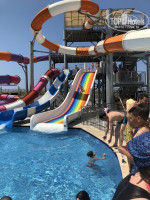 Отель большой, а вот территории мало, почти все занято бассейнами. Горки работают с 10 до 12 и с 14 до 16. Малую на горку-унитаз не пустили, ограничение по возрасту (с 18 лет). Остальные она пользовала в свое удовольствие, включая детские.