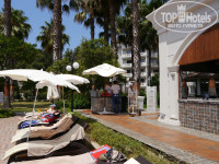 Теперь о главных плюсах, ради которых, собственно, и выбрали отель. Первая линия и собственный пляж. Море достаточно чистое. Особенно если отплыть за оба понтона. Над головами на "набережной" отеля кедры и пальмы. Свежий "хвойно-морской" воздух. Рядом расположен большой муниципальный парк. Есть горки для детей. Наши дети также без проблем ходили на горки и в соседний отель к друзьям. Анимация работает на совесть: аквааэробика, йога, мини-диско, анимационые программы и шоу приглашенных акробатов и артистов. Есть теннисный корт, стол для наст. тенниса (в тени под деревьями), дартс, водное поло после обеда и др. пару раз вечером даже был салют. Один раз после победы России над Испанией (может совпало, конечно). Питание неплохое. Фруктов, мяса и рыбы хватало. Но, повторюсь, были очереди и тесновато.