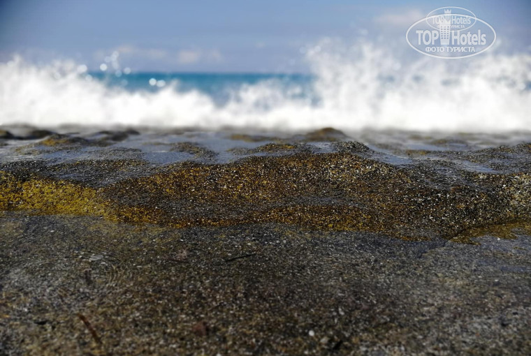 ПЛЯЖ - по подземному переходу сразу из отеля, песчаный, обустроенный, есть бар. Вход в море - это проход вырубленный в каменных плитах и засыпанный галькой с песком. Никто не поранился, но с разбегу конечно не занырнешь. Постоянная волна, что невероятно радует детей. Есть вероятность остаться без купальника).