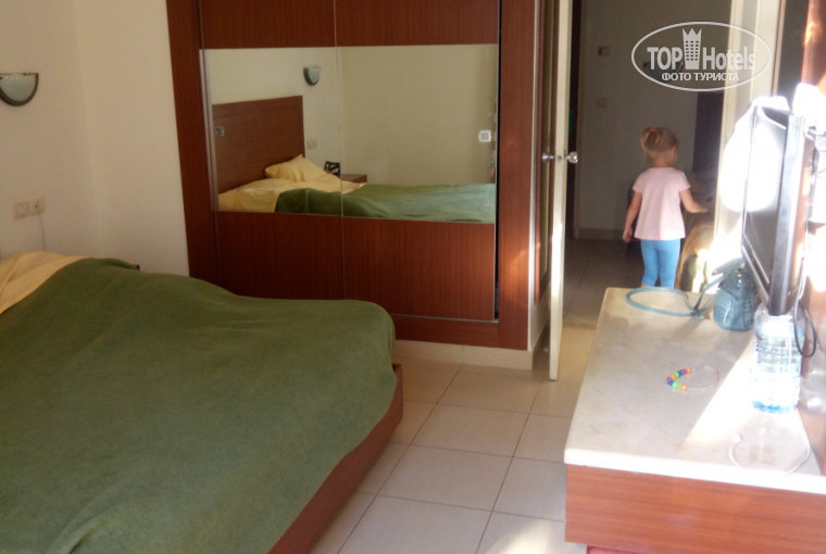 НОМЕР. №1277 - корпус Ясмин, теневая сторона, двухкомнатные апартаменты. Номер тесный, с запахом сырости. В одной комнате кровать king size, во второй две одноместные. 2 шкафа-купе, 2 телевизора, 2 кондиционера. Всё исправно, пульт от телевизора на ресепшн. Балкон с маленьким столиком и двумя стульями. Совмещенный санузел с душевой кабиной. По одной свободной розетке в каждой комнате, плюс в ванной. Это беда всех номеров, поэтому берите тройник.