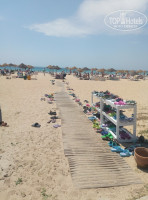 ПЛЯЖ большой, с широкой полосой мелкого, белого песка между морем и линией лежаков. Заход в море для детей, медуз не было, иногда волны выбрасывали водоросли.
