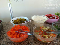 Вешать мокрое белье можно на перила балкона, мы брали с собой веревку и прищепки- пригодились.В номере есть маленький холодильничек. Феном не пользовались. Вода теплая - круглосуточно. Из-за шума с трассы дверь на балкон закрывали. Было душно-включали кондиционер. Кровати максимально отодвигали от холодного воздуха из кондиционера. Утром начинают орать петухи. Но все равно как-то спали - воздух, море.....Телевизором почти не пользовались. Показывает ОРТ, муз.рос.канал, много турец.каналов.