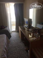 Только вчера вернулись с отдыха. Были вдвоём с мужем. Отель очень старенький и невзрачный. Мебель вся старая, лифты страшные. Запах в отеле неприятный. Первое впечатление об отеле было отрицательным. На 5 звёзд он конечно не выглядит. В первый день нас заселили в номер без балкона(сказали, что много народа и других номеров нет. Поэтому попросили денёк пожить там, а на следующий день дадут номер с балконом). Деваться было некуда. Денёк пожили там, на следующий день действительно переселили в более просторный номер с балконом. Номер был чистый, но, как и весь отель, без современного дизайна и ремонта. Одна двуспальная кровать и одна односпальная, шкаф, зеркало с тумбочкой, холодильник и кондиционер. В ванной было все чисто, сантехника не ржавая и то на этом спасибо. Территория у отеля красивая, зелёная, есть несколько бассейнов. Еда однообразная, но вкусная, голодными не были. Пляж малюсенький, но есть пирс с лежаками и зонтиками, на нем и загорали. Персонал добрый, вежливый, приветливый. В общем, если сравнивать этот отель с другими патерками, то он явно уступает по всем параметрам. Кстати, о звездности отеля в отеле нет ни намёка. Кто не особо привередлив, тем возможно понравится.