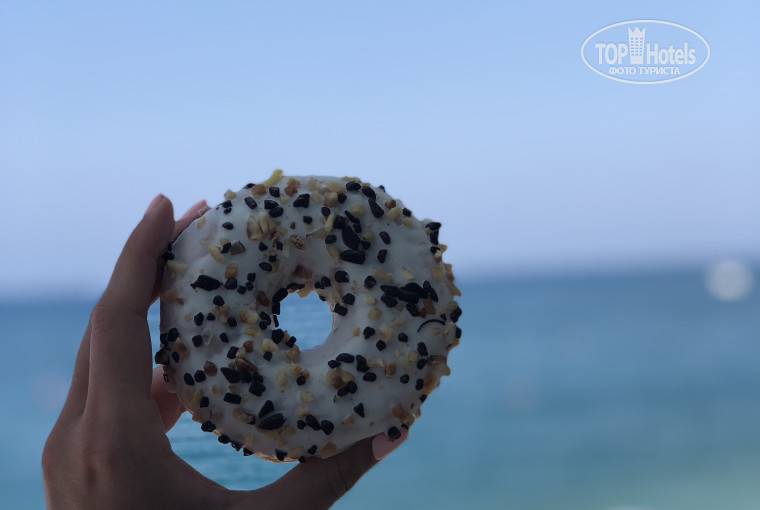 Мы приехали в отель в 7:30 утра, поставили чемоданы и пошли в столовую есть. Покушали отлично. На завтрак делают омлет(очень вкусный), овощи, сыры, колбаса, хлопья различные, много булочек, каша( мы брали манку, очень вкусная), яичница, яичница болтунья, сосиски и что-то турецкое(мы это не ели), делают очень вкусные блинчики, панкейки и вафли) много соусов, мёд, молоко, чай. Есть отличное кафе-кондитерская около пляжа, там вкусно: мы пили горячий шоколад с круассаном или с пончиком.