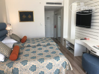 С 8:30 и до 13:30 мы ждали заселения ( ждали в холле, тк перед тем как идти в бассейн тли на море, хотелось нормально заселиться, разложить вещи и принять душ), это время длилось бесконечно, мы подходили к ребятам на ресепшн и намекали на то, что готовы заплатить деньги за раннее заселение, но они показывали компьютер на котором все номера были красные, т.е. не готовы. Нас заселили в 13.30 на втором этаже. Номер был без балкона, мне это не понравилось. Я зашла на их оф.сайт и нашла категорию нашего номера - standart room, в описании написано, что в этой категории номеров предусматривается французский балкон. Мы пошли на рецепшн, где рускоговорящяя девушка сказала, что у них нет номеров с балконом, и вообще, их во всем отеле всего 8%. После того, как я напомнила, что эта категория номеров предоставляется с балконом, тут же нашлись 2 номера с балконом(один был уже готов, но там 2 раздельные кровати, второй с одной двуспальной кроватью ещё нужно было ждать около часа). Мы не стали ждать и заселились в номер с двумя односпальными кроватями, мы просто их сдвинули. Кстати, номера не очень чистые(есть такая грязь, которая не оттирается, нам было нормально), но очень красивые. Вообще весь отель выполнен в стиле Амстердама.