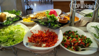 Питание - на территории один главный ресторан , завтрак с 7 до 10 утра, обед с 12-30 до 14 и ужин с 19 до 21-30, поздний завтрак с 10 до 11 и поздний ужин с 23 до 24 часов. Большой выбор блюд во все приемы пищи. Можно найти на любой вкус. Салаты, жаренное, варенное, тушеное, гарниры, фрукты - овощи, изобилие сладкого традиционно турецкого, напитки чай кофе, пиво и покрепче. Единственно , что не очень понравилось блюда через день повторяются.