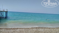 Пляж большой, все лежаки под большим тентом, всегда есть место где спрятаться от солнца, но если Вы хотите много времени проводить загорая нужно приходить рано утром занимать лежак. Полотенца для пляжа выдаются в СПА. Полотенце можно получить утром, и вечером отдать грязное поменяв его на карточку. Мы ходили по береговой линии, по сравнению в другими пляжами отелей наш нам понравился больше всего. Заход в море камушки, лучше заходить в специальных тапочках, мы привезли с собой мыльницы, но их сразу уносит вода и мы купили через дорогу тканевые за 5 евро, кстати в магазине отеля за них хотели 10 евро. Если плохо плаваете запаситесь кругом или нарукавниками, практически всегда на море волны, и практически сразу глубина.