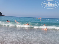 Пляж песчаный, на входе в море – галечный. Море штормило все 10 дней отпуска, берег довольно крут и быстро уходит на глубину. Отдыхающим с детьми желательно захватить с собой плав. средства для безопасности. И не помешает специальная обувь для купания для тех, у кого стопы чувствительны к гальке. В основном мы отдыхали на пляже, как оказалось принадлежащем отелю Делюкс, выяснилось это в последний день отдыха, когда при нас охранник выгнал с пляжа отдыхающих из Джустиниано Клаб. Хотя таблички на пляже информируют, что пляжи для отдыхающих Джустиниано Хотелс, и ни о каком разграничении не написано. Ситуация получилась неприятная и омрачающая настроение.