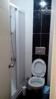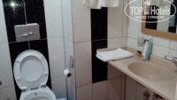 Санузел чистый, кафель свеженький, не замытый. Душевая кабина с дверцами на магнитах, вода на пол не попадает. Два махровых полотенца, и отдельно одно для ног. На раковине пять маленьких бутыльков с шампунем и несколько небольших дорожных печаток мыла в упаковке. Я забрала их в сумку (сувениры), на следующий день уборщица положила еще.